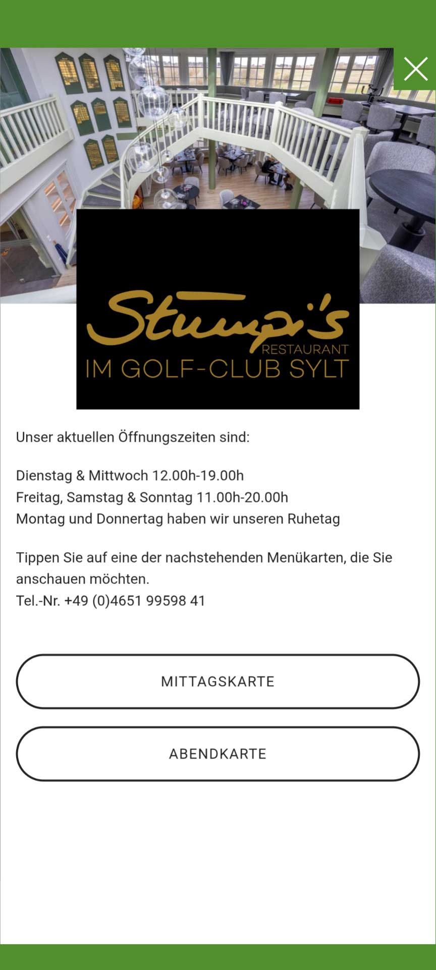 Hier sehen Sie, wie die Gastronomie in die Apps der Golfclubs Sylt, Marine Golf Club Sylt, Golf Resort Gut Apeldör und Lübeck-Travemünder Golf-Klub integriert wurden.
